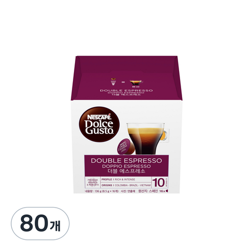 돌체구스토 더블 에스프레소는 커피 애호가를 위한 최상의 선택입니다. 이 매력적인 캡슐커피는 진하고 풍부한 맛으로 집에서 바리스타가 만든 맛있는 에스프레소를 즐길 수 있도록 해줍니다. 8.5g의 정밀하게 분쇄된 커피를 담은 각 캡슐은 완벽한 균형을 맞춘 특별한 혼합물로 제작되었습니다.