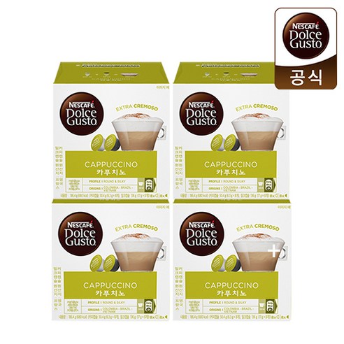 돌체 구스토 카푸치노 캡슐 4박스에는 총 64개의 캡슐이 포함되어 있습니다. 개당 가격은 568원으로, 카페에서 카푸치노 한 잔의 가격보다 상당히 저렴합니다. 고품질 커피를 집에서 편안하게 즐길 수 있는 경제적인 선택입니다.