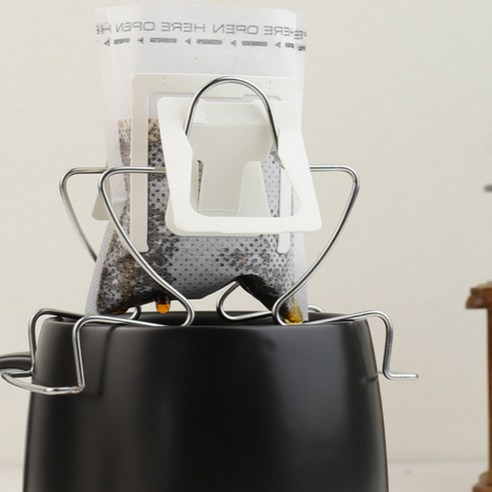 드립백 거치대는 사용이 놀라울 정도로 간단합니다. 먼저 抽出컵에 드립백 커피를 넣습니다. 그런 다음 거치대에 抽出컵을 올려놓고 뜨거운 물을 천천히 붓기만 하면 됩니다. 커피가 필터를 통해 걸러지면 아래에 있는 커피잔에 따뜻하고 향긋한 커피가 담깁니다.